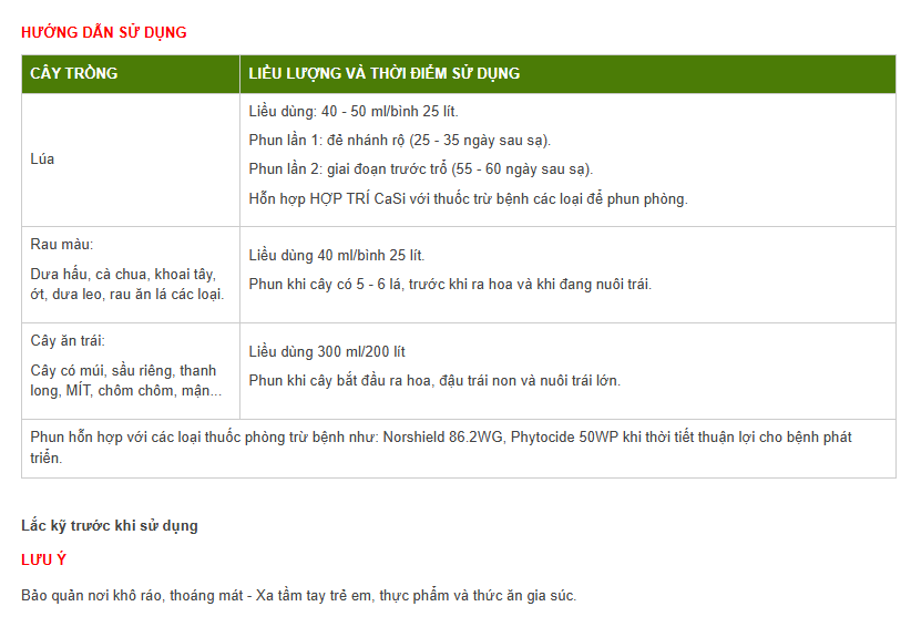 Hợp Trí Casi là sự kết hợp hoàn hảo giữa Canxi oxit (CaO: 20%) và Silic dioxit hữu hiệu (SiO2hh: 5%), được sản xuất theo công nghệ MS (Micro suspension) với hạt cực nhỏ, phân tán tốt, hấp thu nhanh vào bên trong cây, giúp cây trồng phát triển khỏe mạnh, cứng cáp, lá xanh tươi tốt, mang lại hiệu quả kinh tế vượt trội.