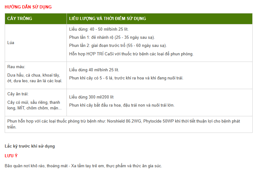 Trên lúa: Giúp lá xanh, dầy, thẳng đứng (không bị rợp), tăng quang hợp, thân cứng cáp, chống đổ ngã.