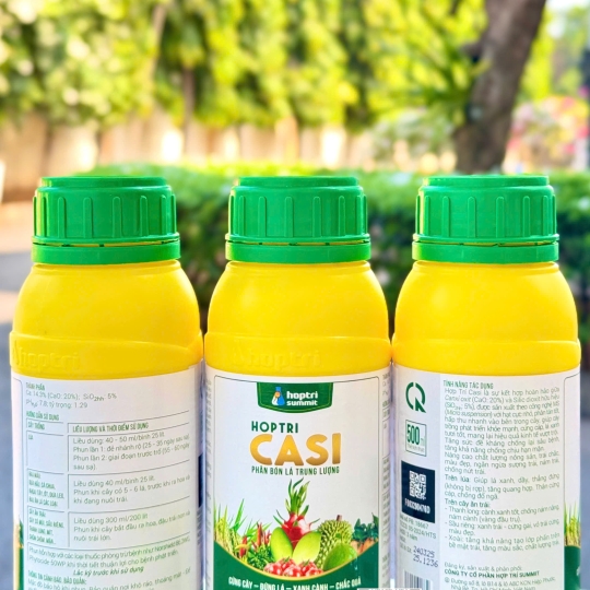 Hợp Trí Casi là sự kết hợp hoàn hảo giữa Canxi oxit (CaO: 20%) và Silic dioxit hữu hiệu (SiO2hh: 5%), được sản xuất theo công nghệ MS (Micro suspension) với hạt cực nhỏ, phân tán tốt, hấp thu nhanh vào bên trong cây, giúp cây trồng phát triển khỏe mạnh, cứng cáp, lá xanh tươi tốt, mang lại hiệu quả kinh tế vượt trội.