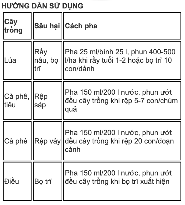 - Đặc trị các loại côn trùng chích hút.