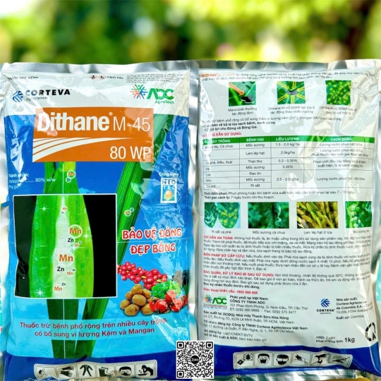 Dithane M-45 80WP có công thức độc đáo cho hàm lượng thành phần ổn định, gia tăng cung cấp vi lượng kẽm (Zn2+) và Mangan (Mn2+) cho cây, giúp bảo vệ cây sạch bệnh, gân lá cứng và xanh mướt hơn. Rất có lợi cho Đòng và Bông lúa.