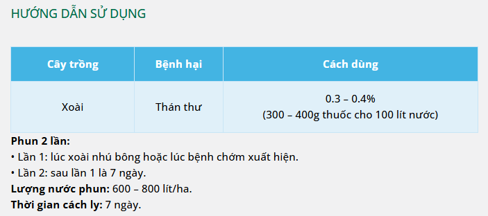 DOVE 80WP – Thuốc trừ bệnh có tác dụng tiếp xúc và tái phân tán mạnh (phân bố đồng đều trở lại trên bề mặt lá, trái,…khi tiếp xúc với hơi ẩm). Nhờ vậy gia tăng diện tích tiếp xúc và hiệu quả trong trừ bệnh.
