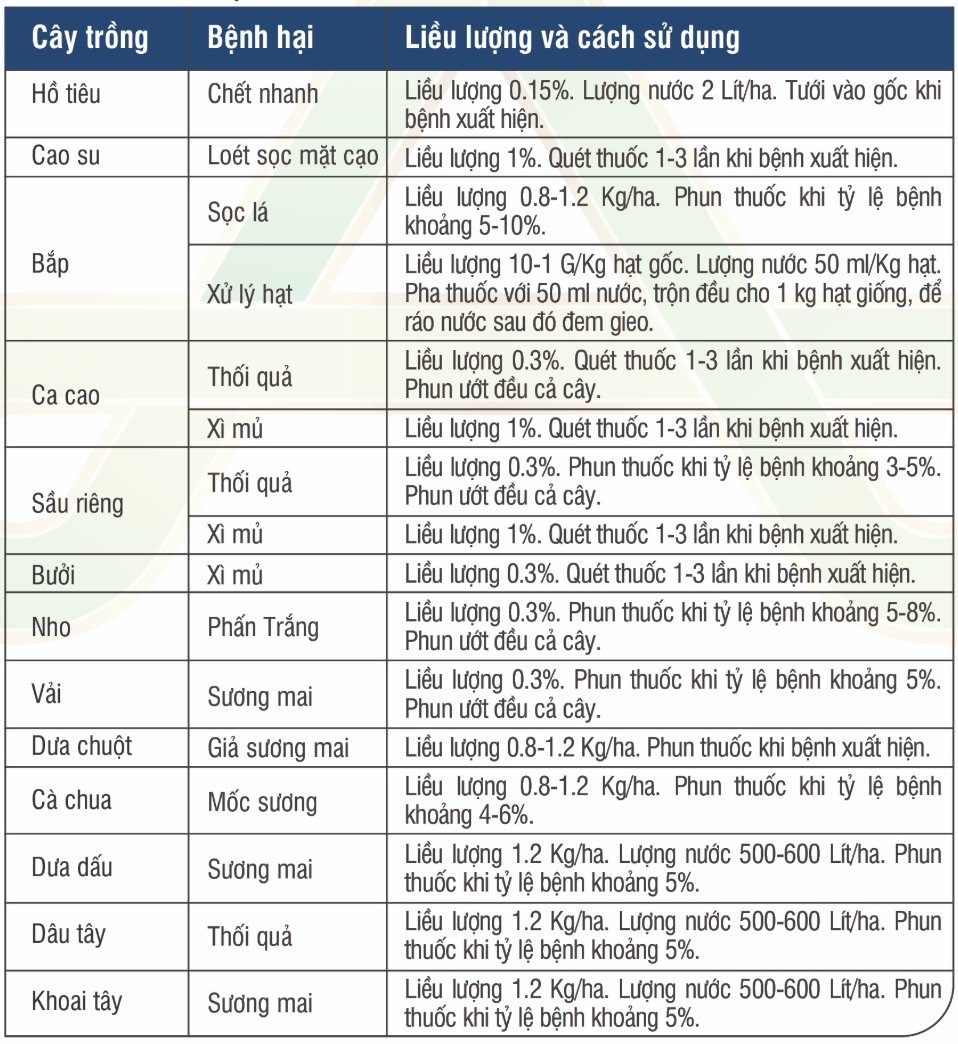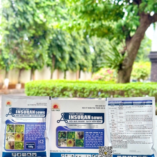 Insuran 50WG là thuốc trừ nấm phổ rộng, có tác dụng nội hấp, sử dụng trên nhiều loại cây trồng. Đặc trị các bệnh : phấn trắng, chết nhanh, xử lý hạt, sọc lá, giả sương mai, mốc sương, sương mai, loét sọc mặt cạo, xì mủ, thối quả trên nhiều loại cây.