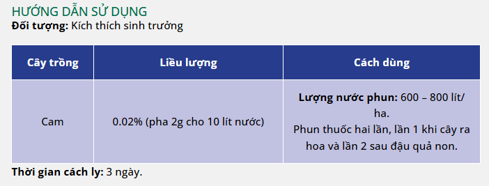 RASINO 0.018WP – Thuốc điều hòa, kích thích sinh trưởng giúp tăng năng suất và chất lượng (độ brix) trên cây cam.