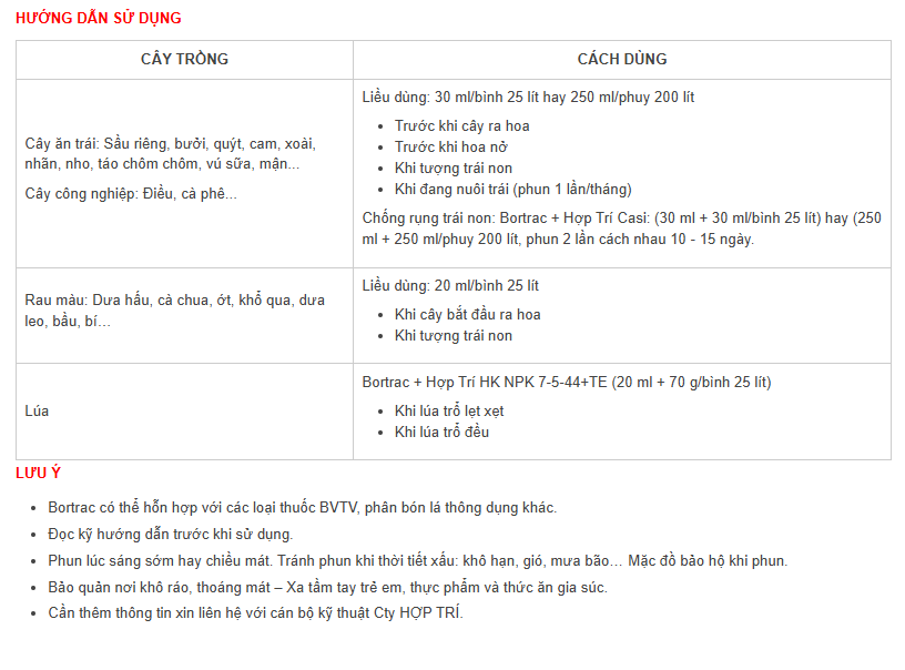 Trên cây ăn trái và rau màu, Bortrac có tác dụng: