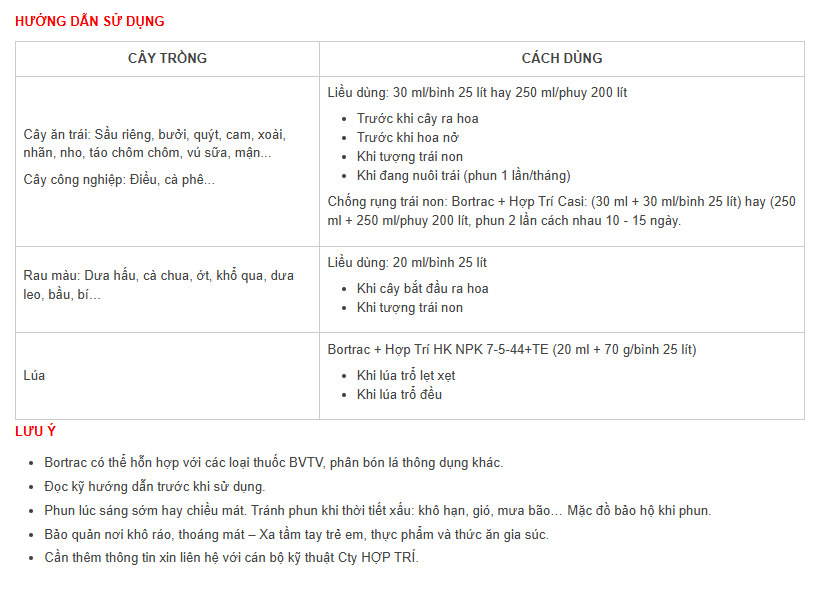 Trên cây ăn trái và rau màu, Bortrac có tác dụng: