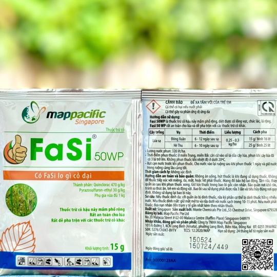 Fasi 50WP là thuốc : Thuốc trừ cỏ hậu nẩy mầm phổ rộng Rất an toàn cho lúa Rất dễ pha trộn với các thuốc trừ cỏ khác.