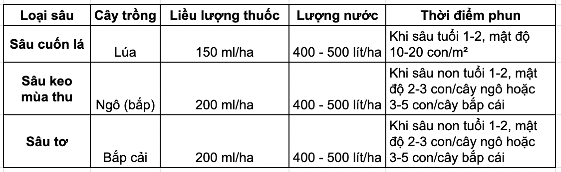 Vayego 200SC có khả năng kiểm soát mạnh mẽ các loài sâu thuộc bộ cánh vảy trên nhiều loại cây trồng khác nhau như lúa, rau màu và cây công nghiệp.