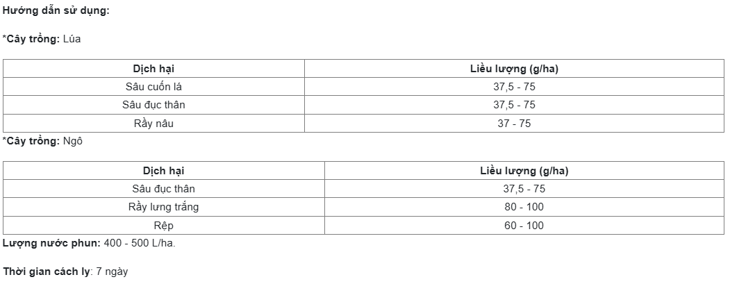 Trừ dịch hại: Sâu cuốn lá, sâu đục thân, rầy nâu, rầy lưng trắng, rệp